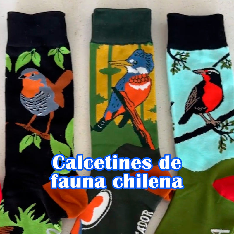 Calcetines de algodón, largos, Calcetines Pajaro Carpintero Negro Chile, talla 41-45.