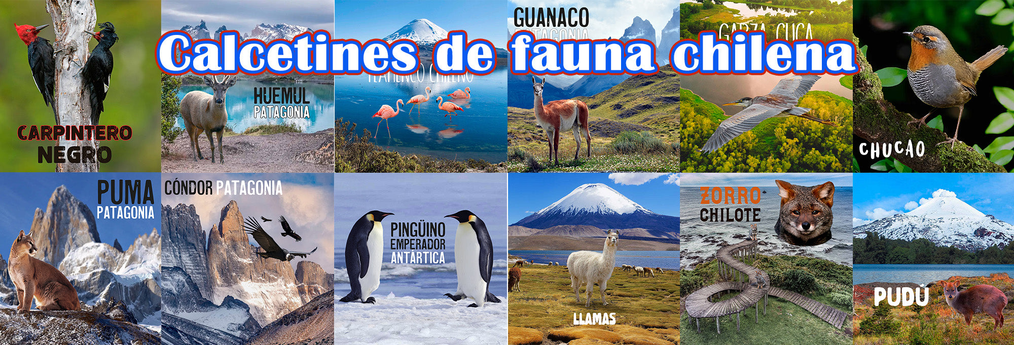 Calcetines de algodón, largos, guanaco en Torres del Paine, Patagonia talla 41-45.