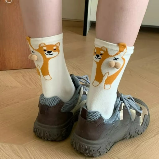 Calcetines Perro Naranja con Cola talla 36-40 de algodón con colita y pompóm. Advertencia: Las bolitas estan pegadas con gotita NO ESTAN COSIDAS, a...