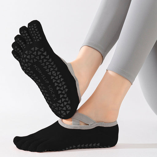 Calcetín Deportivo Yoga Antideslizante Ajustable Negro Calcetín de algodón, Deportivo Yoga Antideslizante Corto Dedos Negro tallas 36-40.