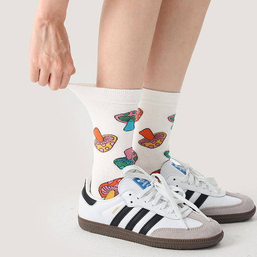 Calcetines de algodón largos, con dibujo de papas fritas, color rojo, amarillo y gris, talla 41-45.