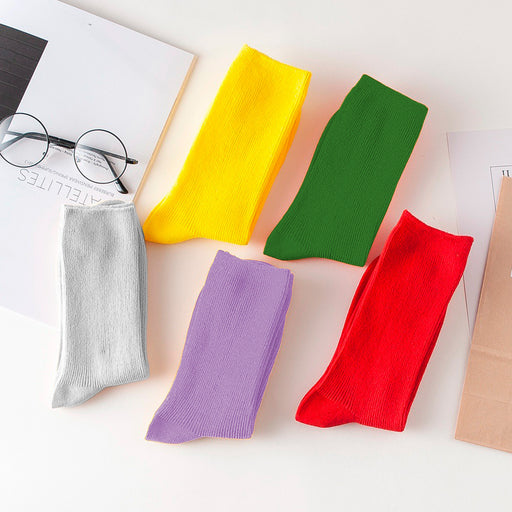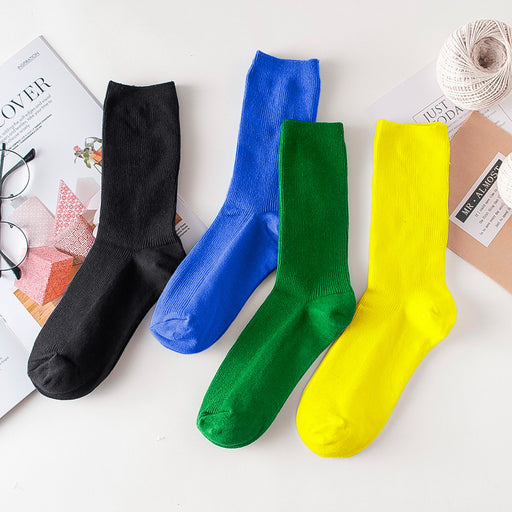 Calcetines de algodón Liso Color Amarillo Talla 36-40.