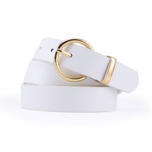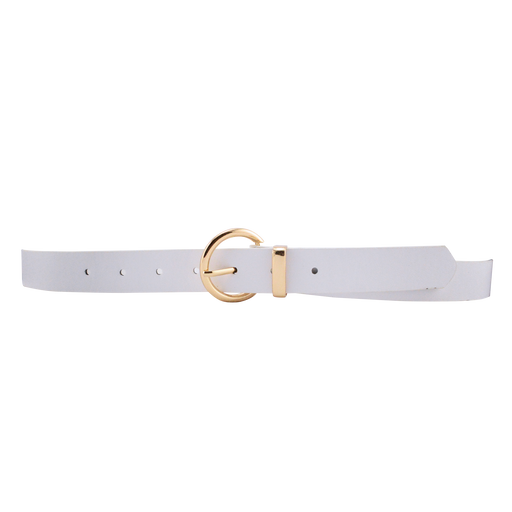 Cinturón Mujer Color Blanco Hebilla redonda simple Con pasador metálico Medidas Ancho: 3cm aprox Largo: 110cm aprox (desde la hebilla)