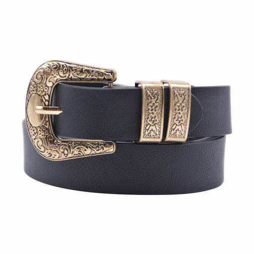 Ver todos los detallesCinturón Mujer Color Negro Hebilla Brillitos Herradura Dorada Con pasador sintético Medidas Ancho: 3cm aprox Largo: 110cm aprox (desde la hebil...