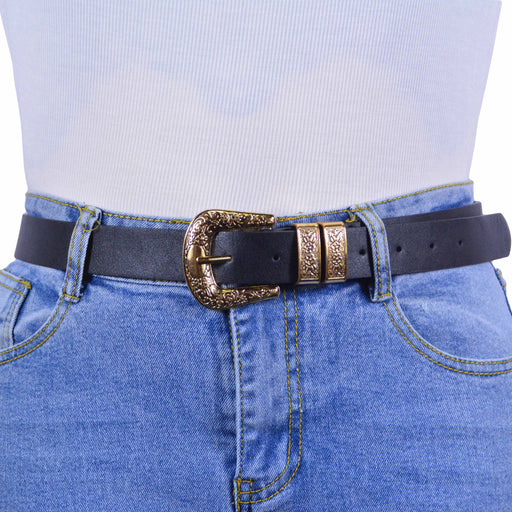 Cinturón Mujer Color Negro Hebilla Grande texturizada dorada Con pasador sintético Medidas Ancho: 4cm aprox Largo: 110cm aprox (desde la hebilla)