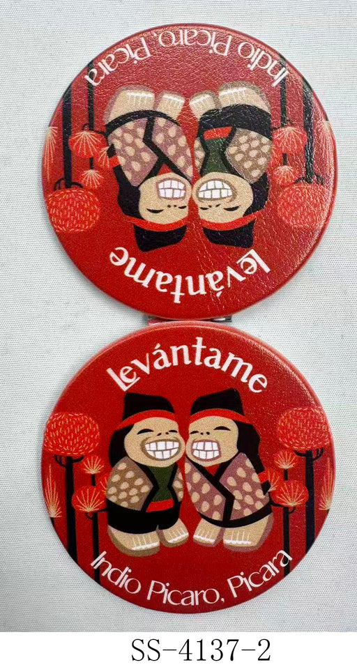 Espejo de cartera doble cara, el espejo se abre por la mitad, revelando dos espejos redondos en el interior, uno en la tapa normal y otro en la bas...