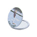 Espejo de cartera doble cara, el espejo se abre por la mitad, revelando dos espejos redondos en el interior, uno en la tapa normal y otro en la base con aumento, su tamaño es de 7.2cm y es de metal.